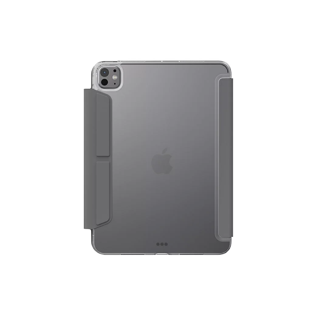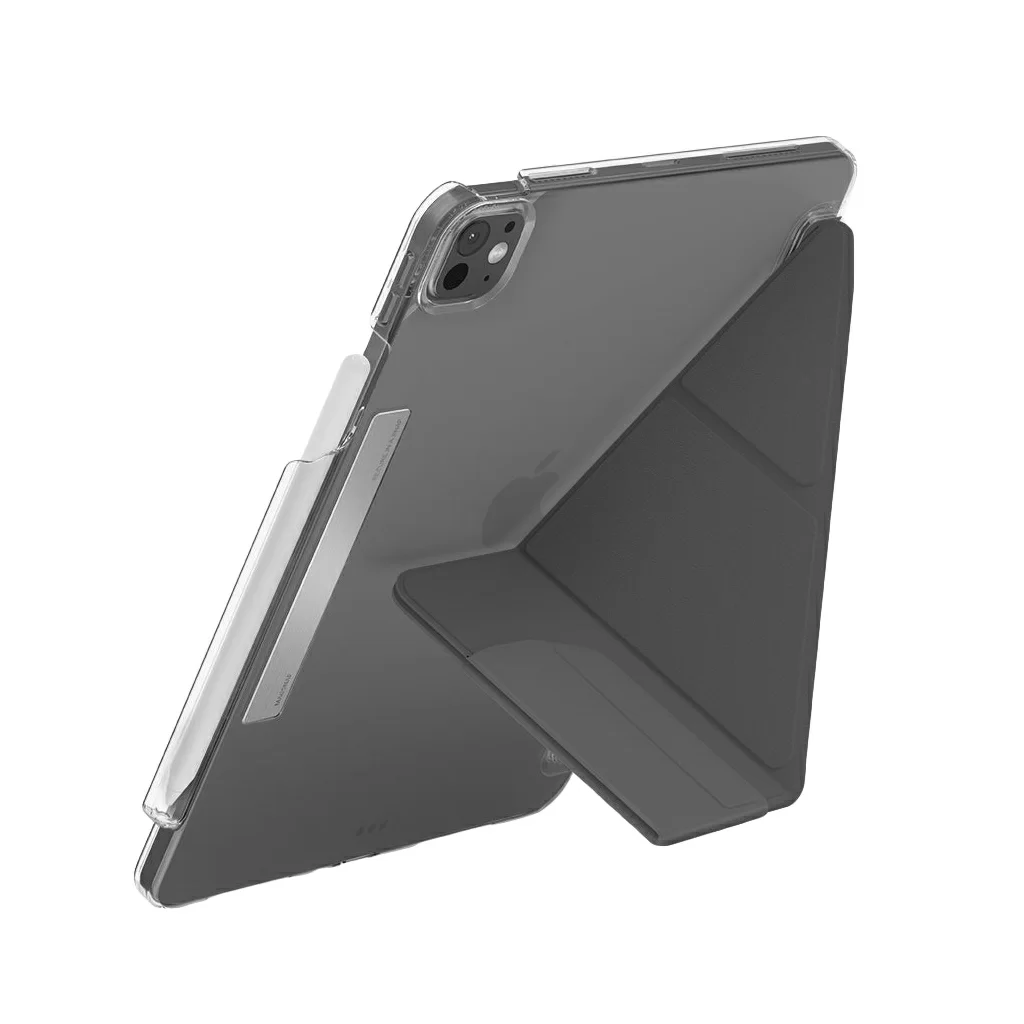 Чехол Uniq Camden для iPad Pro 13 (2024) – это идеальное сочетание стиля, защиты и функциональности. Прочный прозрачный пластиковый каркас  делает чехол устойчивым к падениям, сохраняя при этом красоту вашего устройства. Магнитная накладка на экран выполнена из приятной на ощупь синтетической кожи, а внутренняя поверхность покрыта бархатистой микрофиброй с ионами серебра, обеспечивая защиту от бактерий. Специальный отсек для Apple Pencil позволяет более комфортно использовать и перемещать его. Чехол легко трансформируется в подставку, позволяя устанавливать iPad под различными углами наклона. Встроенные магниты автоматически включают и выключают планшет при открытии и закрытии чехла. Точные вырезы для разъемов и заглушки для клавиш защищают их от грязи и пыли. Надежная магнитная застежка предотвращает самопроизвольное раскрытие: