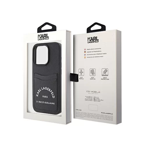 Чехол Lagerfeld для iPhone 15 Plus Cardslot PU Saffiano RSG 3D rubber logo Hard Black