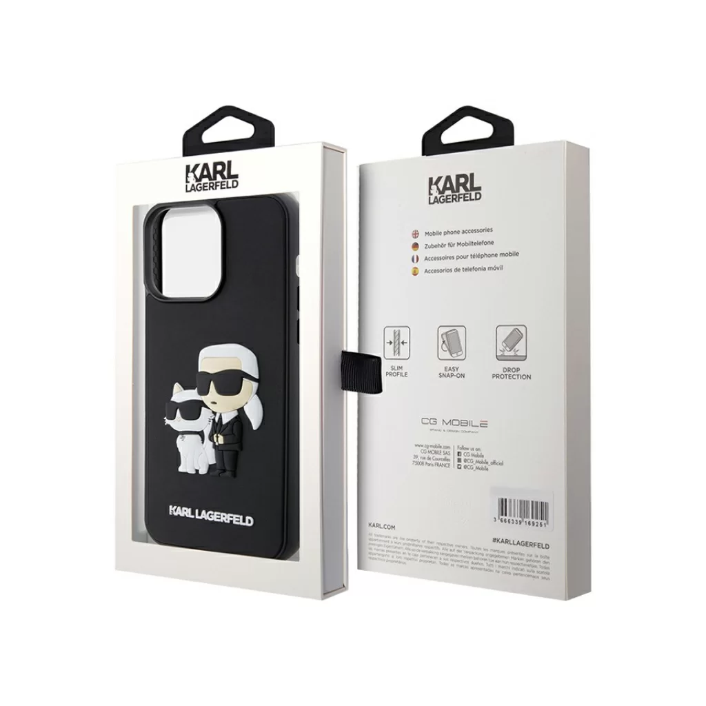 Чехол Lagerfeld для iPhone 15 Pro 3D Rubber Karl & Choupette Hard Black