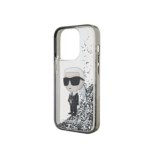 Чехол Lagerfeld для iPhone 15 Pro Liquid Glitter NFT Karl Ikonik Hard Transparent/Black