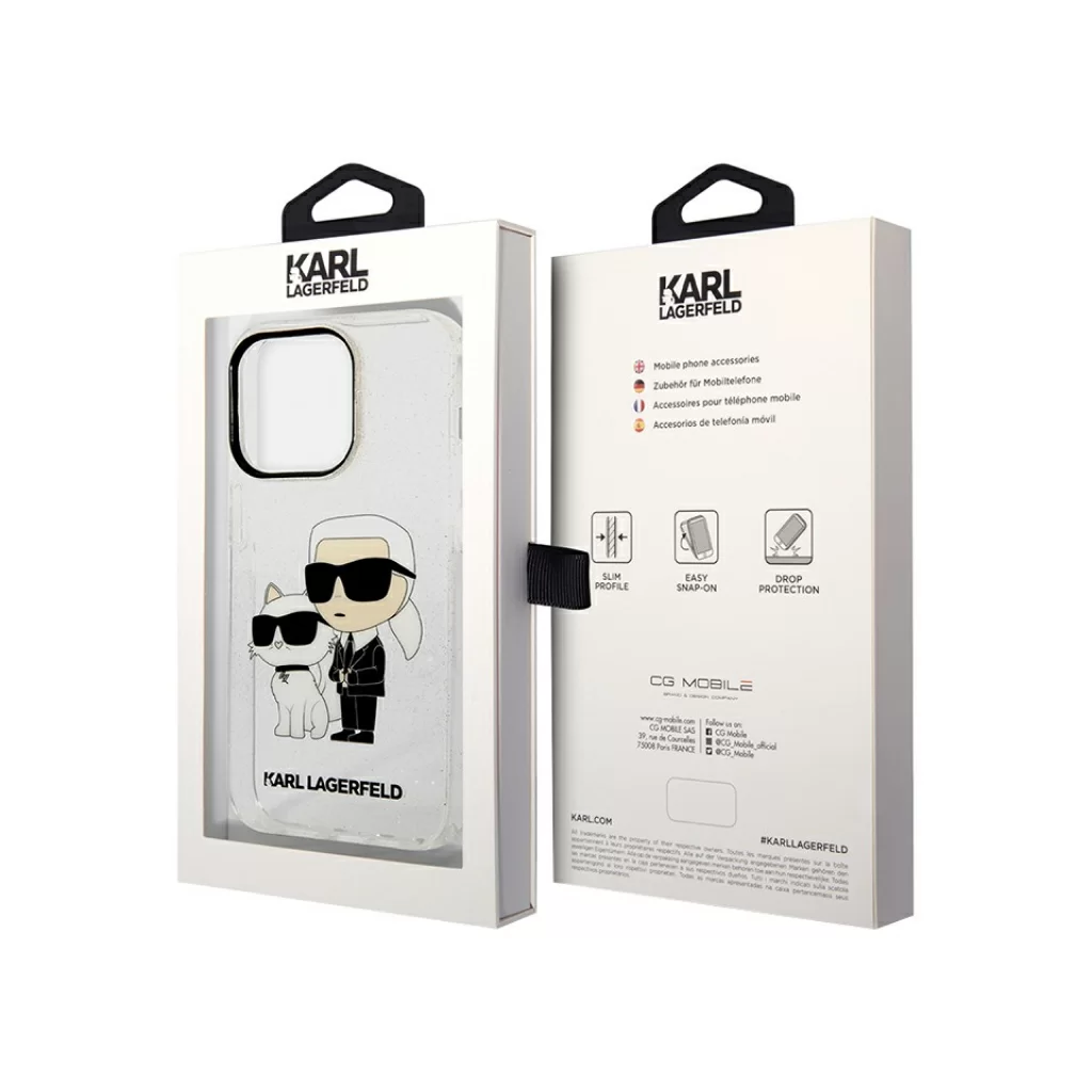 Чехол Lagerfeld для iPhone 15 Pro PC/TPU NFT Karl & Choupette Hard Glitter Transparent