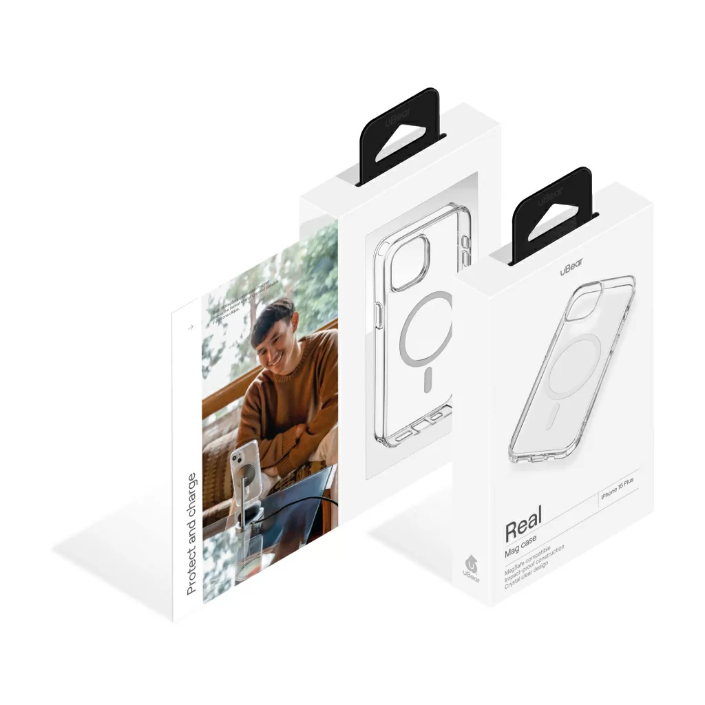 Чехол uBear для iPhone 15 Plus Real Mag Case, усиленный, прозрачный