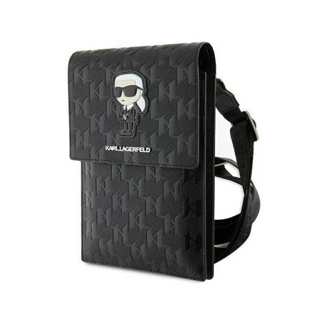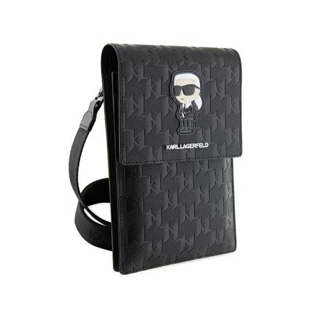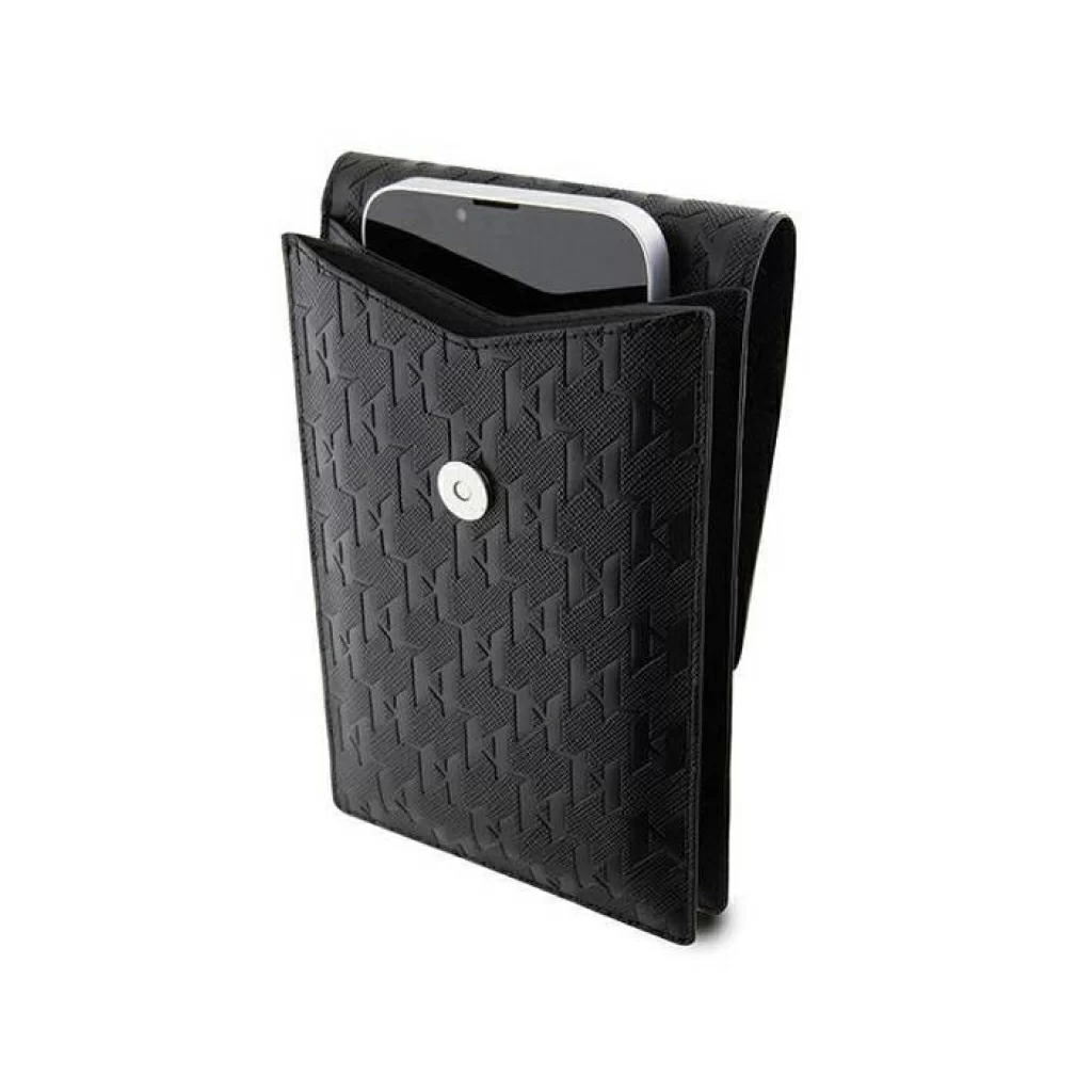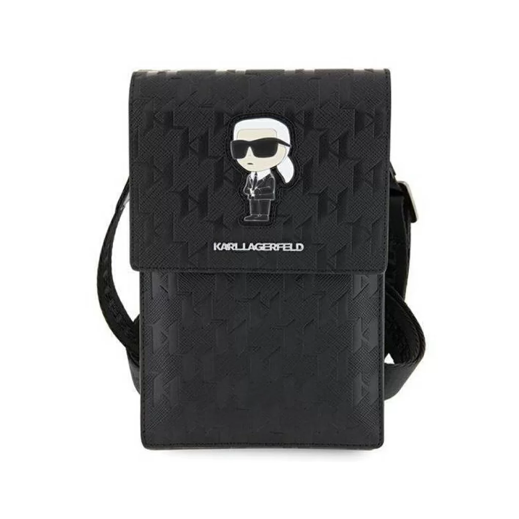 Сумка Lagerfeld Wallet Phone Pouch Saffiano Monogram Ikonik patch для смартфонов, черный / черный
