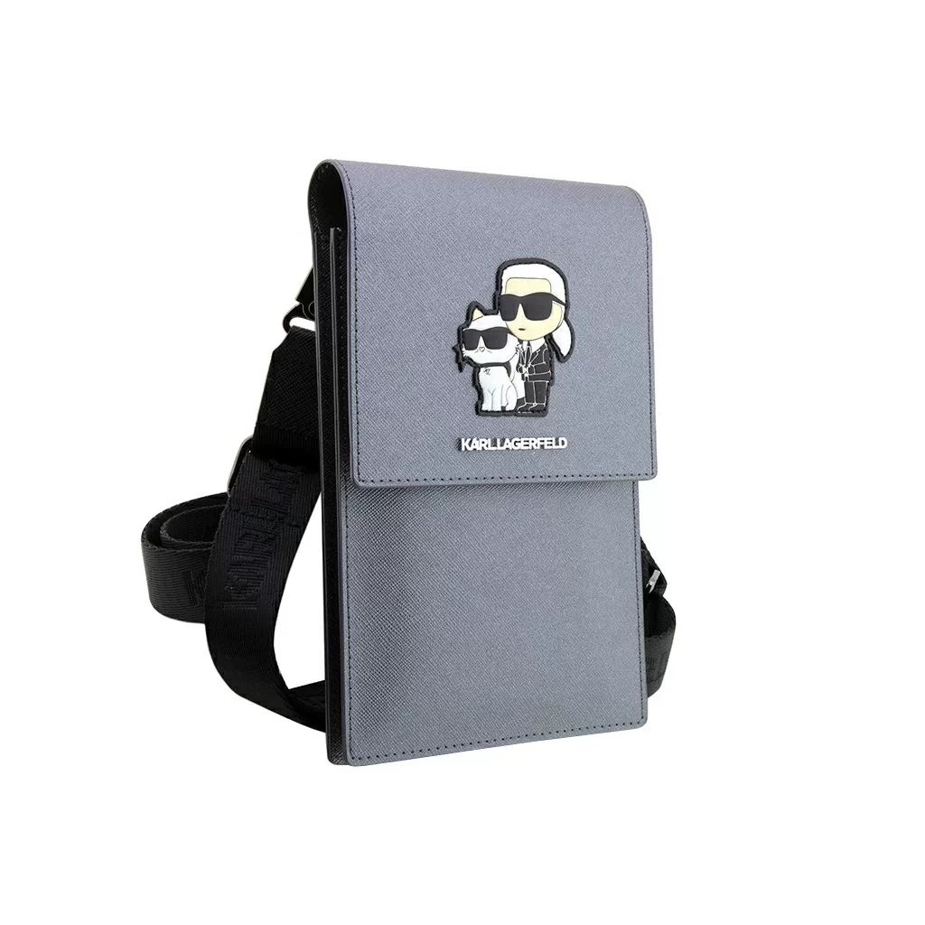 Сумка Lagerfeld Wallet Phone Pouch Saffiano NFT Karl & Choupette для смартфонов, серебристый