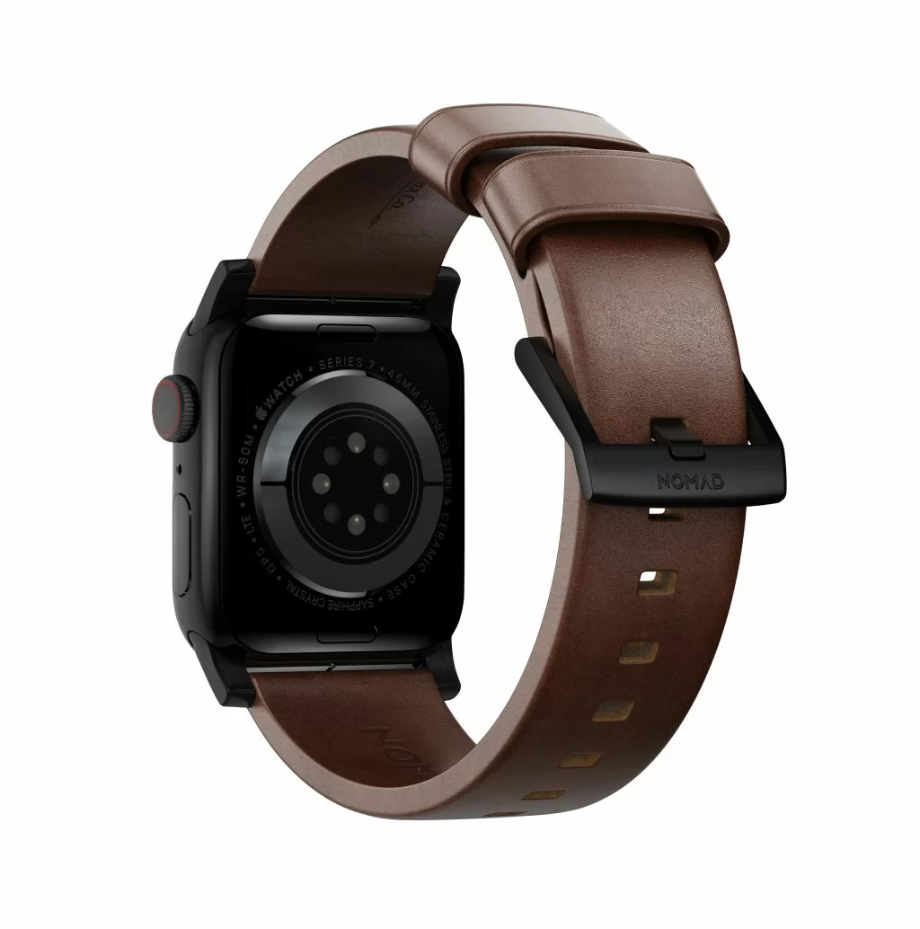 Ремешок Leather Strap от Nomad - разработанный, чтобы придать вашим интеллектуальным часам классический, но смелый новый вид Modern Strap изготовлен из минимально обработанной кожи растительного дубления из одной из старейших кожевенных мастерских Америки и нержавеющей стали. Качественная Horween кожа со временем создает патину, создавая богатый уникальный дизайн. Ремешок приятный на ощупь, регулируется под разный охват запястья.