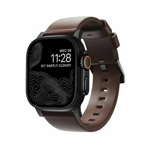 Ремешок Nomad Leather Strap Brown для Apple Watch 49/45/44/42mm, коричневый/черный