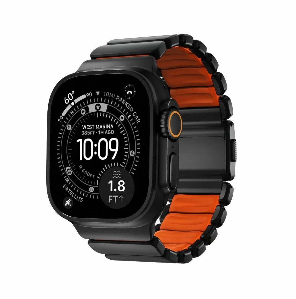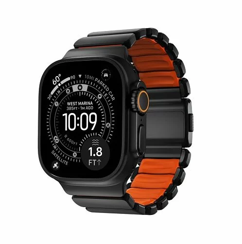 Ремешок Nomad Stratos Band для Apple Watch 45/46/49mm, титан, черный/оранжевый