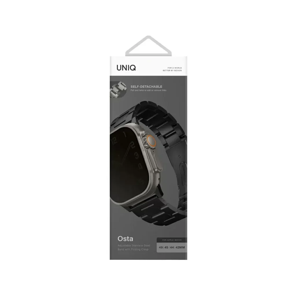Ремешок Uniq OSTA для Apple Watch, 49/45/44/42 мм, сталь, саморегулирующиеся звенья, черный