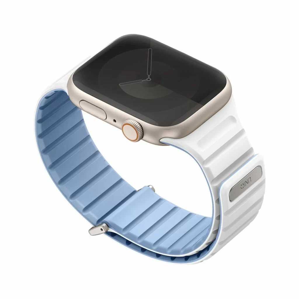 Двусторонний ремешок из мягкого силикона Uniq REVIX EVO для Apple Watch с размером корпуса 42/41/40. Вы можете легко поменять внешние стороны ремешка в зависимости от своего стиля и предпочтений. Фиксируется на руке с помощью удобной магнитной застежки, выдерживает нагрузку до 1.2 кг. Возможность регулировки длины за счет встроенных магнитов обеспечивает точное соответствие размерам руки. Металлическая стальная застежка дополнительно фиксирует устройство на запястье, позволяя не беспокоиться об утере даже при занятиях спортом.
