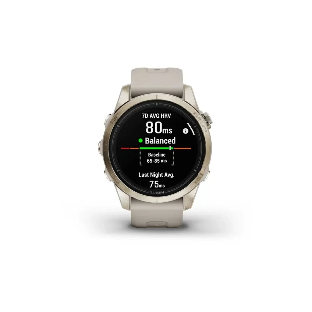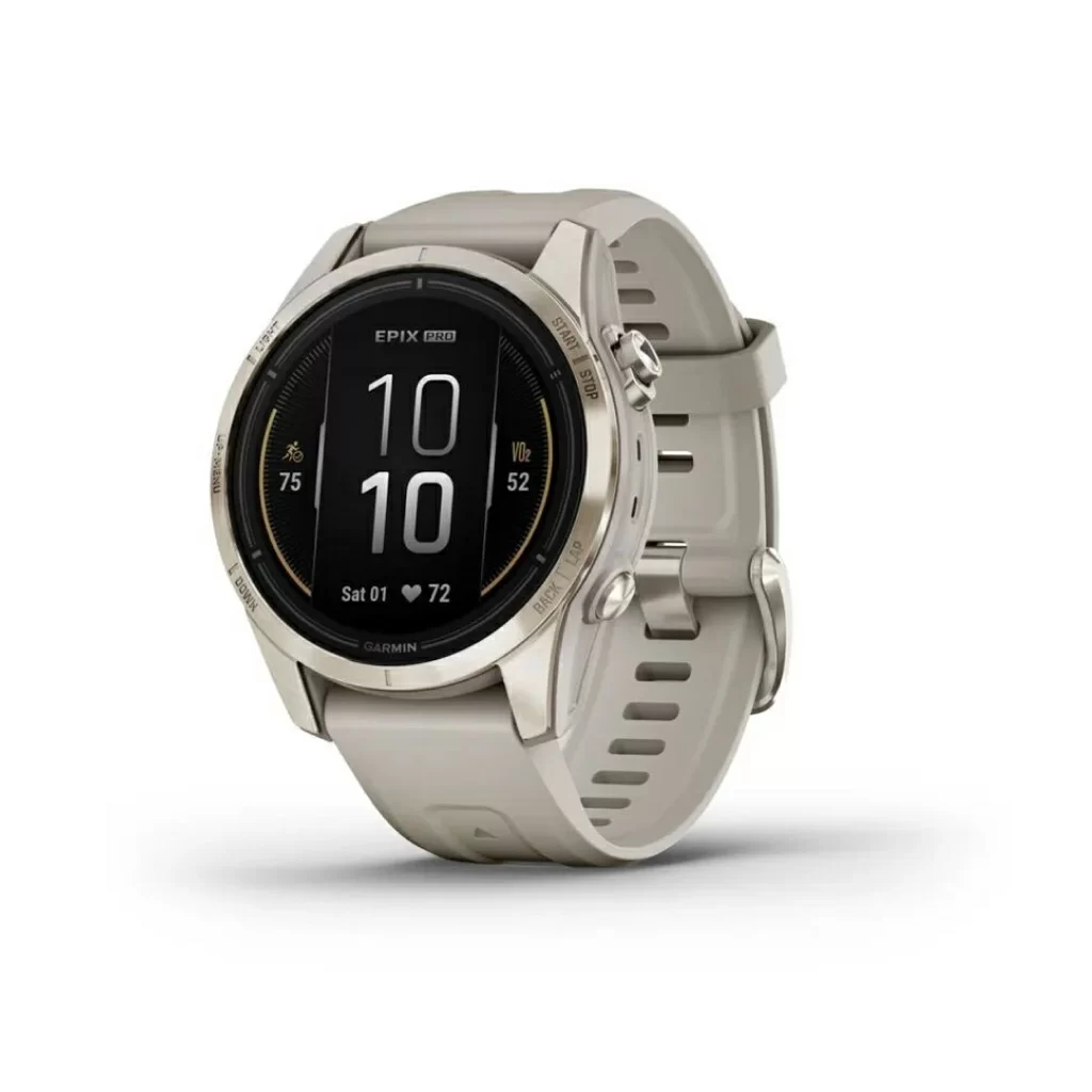 Умные часы Garmin Epix Pro (Gen 2) Sapphire Edition 42 мм, титан/золото, ремешок - светло-песочный