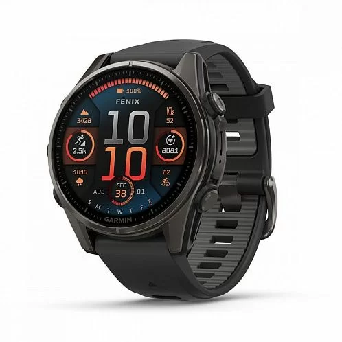 Умные часы Garmin Fenix 8 Sapphire AMOLED 43 мм,Carbon Gray DLC Titanium, Black/Pebble Gray Silicone