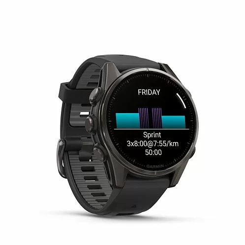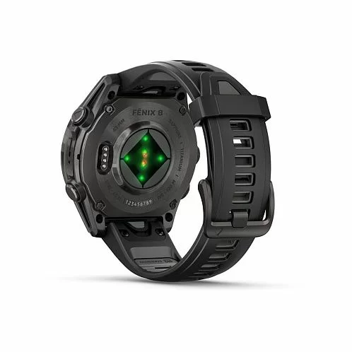 Garmin Fenix 8 получили сенсорный экран и диагональю 1,3 дюйма с разрешением 416х416 точек. AMOLED матрица передает картинку в высокой яркости и контрастности, изображение хорошо видно даже под углом. Экран защищен стеклом Power Sapphire, устойчивым к царапинам. Дисплей может отображать время в аналоговом и цифровом формате.