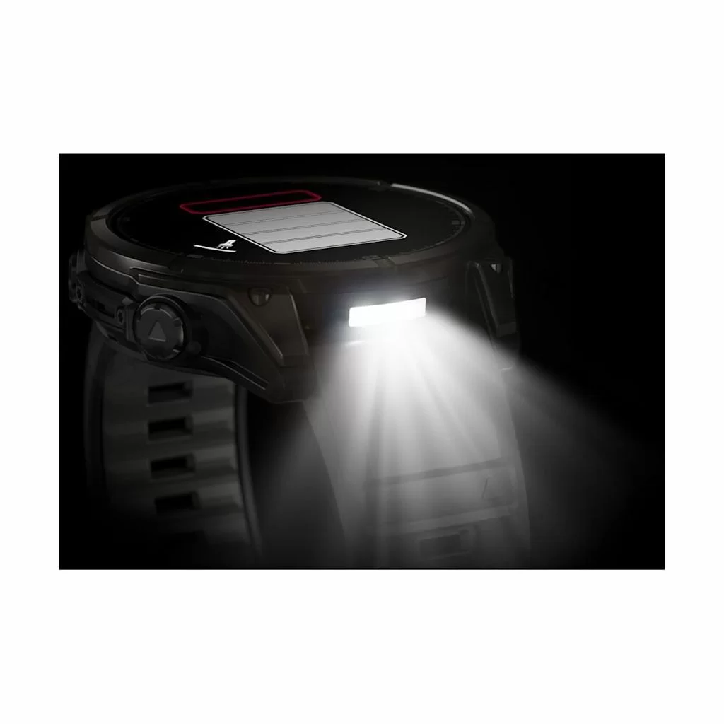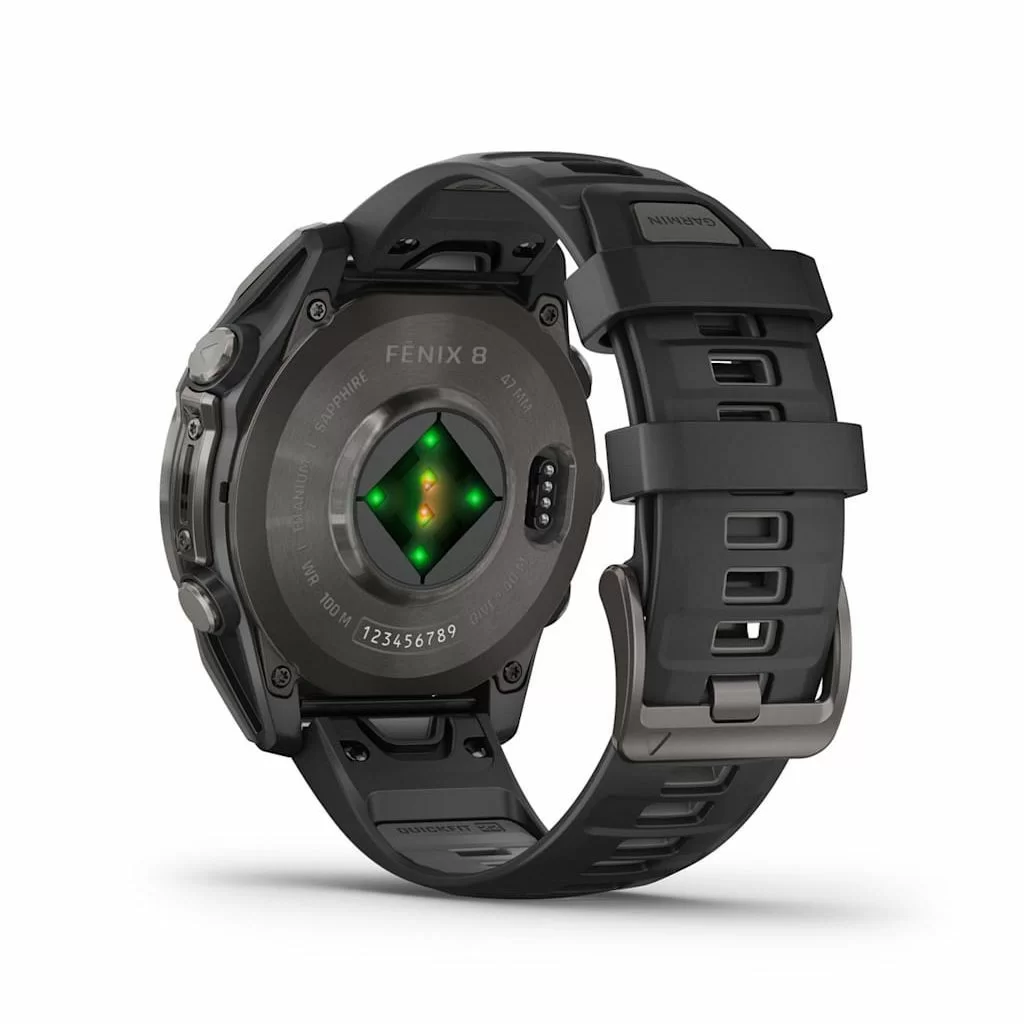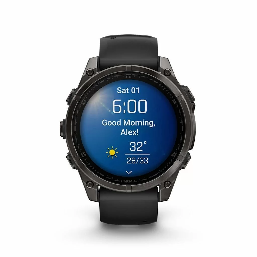 Garmin Fenix 8 — умные часы в титановом корпусе с поддержкой датчиков мониторинга здоровья, совместимы со смартфонами на ОС Android и iOS. Могут принимать звонки и сообщения. Есть функция голосового управления. С часами можно нырять в воду на глубину до 100 м.
