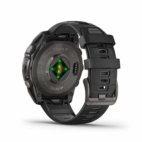 Умные часы Garmin Fenix 8 Sapphire AMOLED 47 мм, титан с DLC, ремешок - силикон, чёрный/серый