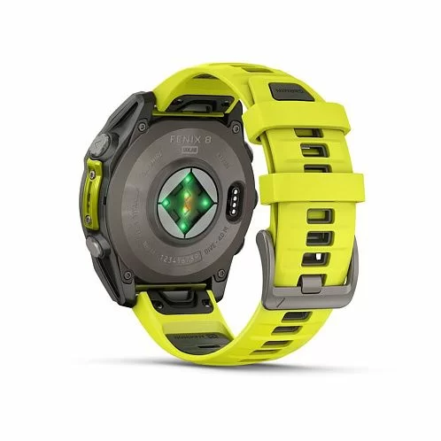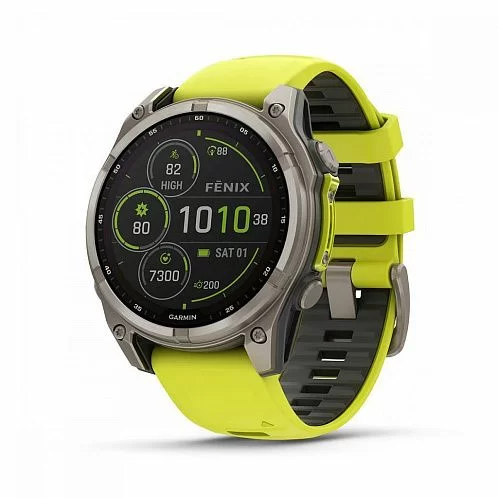 Умные часы Garmin Fenix 8 Sapphire Solar 47 мм, титан, ремешок - силикон, жёлтый/графит