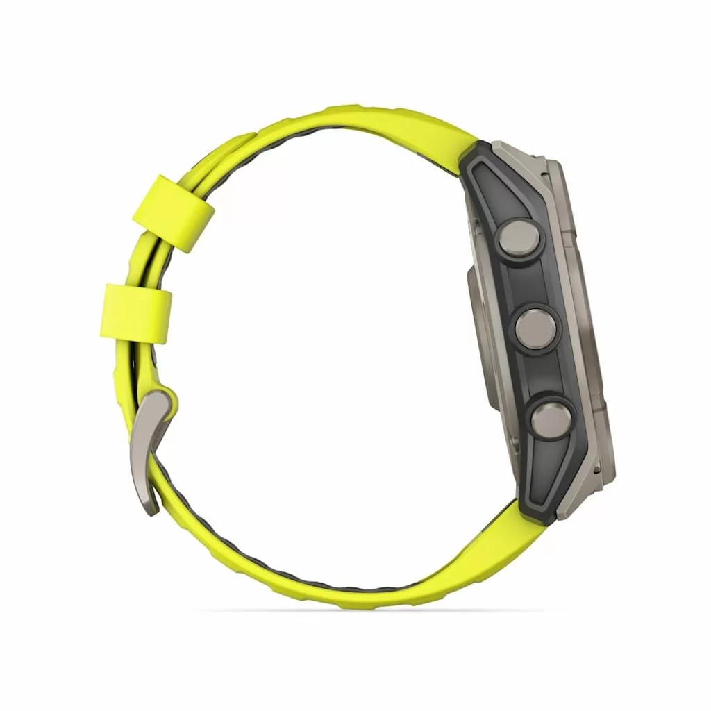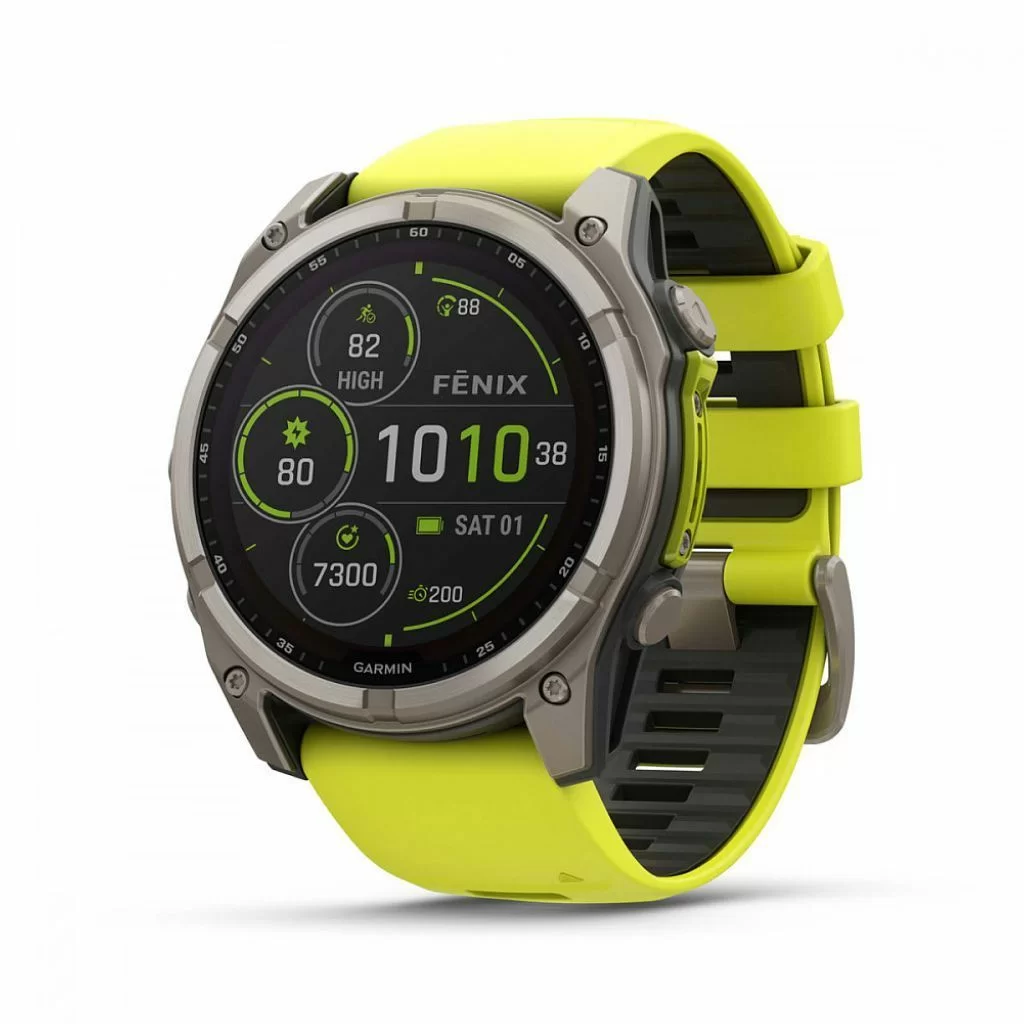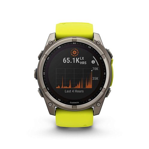 Умные часы Garmin Fenix 8 Sapphire Solar 51 мм, титан, ремешок - силикон, жёлтый/графит