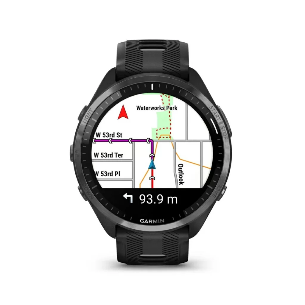 Умные часы Garmin Forerunner 965 черные, темно-серый DLC/титановый безель, ремешок - черный