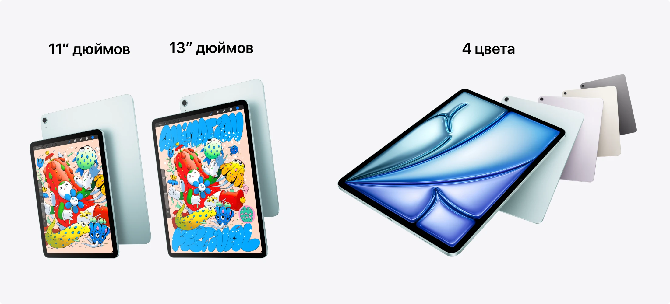 13-дюймовая модель ярче: до 600 нит против 500 нит у 11-дюймовой. Оба варианта — с плотностью 264 ppi. Это не дисплей Pro с OLED и ProMotion, но для 90% задач здесь не хватало бы только придирчивости.