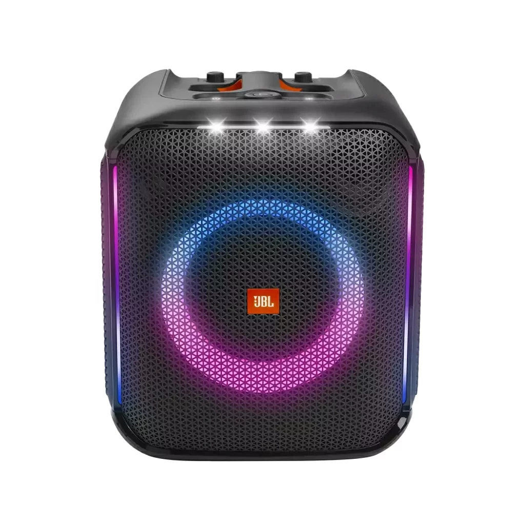 JBL PartyBox Encore непременно привлекает внимание и становится центром притяжения. Всё благодаря системе светодиодов, которые располагаются на фронтальной стороне колонки и переливаются в такт музыки всеми цветами. Так аудиосистема создаёт невероятный звуковизуальный опыт, который просто нужно видеть.