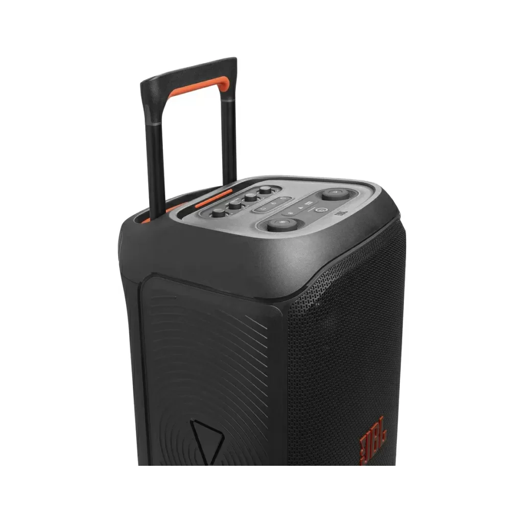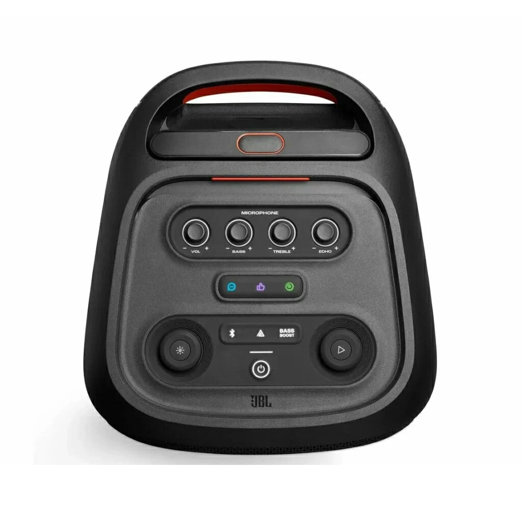 Используйте входы микрофона и гитары, чтобы блистать на сцене. Вы можете управлять ходом вечеринки в течение ночи с помощью веселых интерактивных эффектов. Благодаря надежной телескопической ручке и широким прочным колесикам вы можете перекатить JBL PartyBox Stage 320 практически в любое места, а защита от брызг не позволит небольшому дождю испортить веселье.