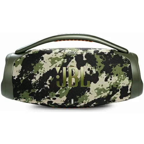 Boombox 3 – это очень приятное обновление мощной портативной колонки от JBL. Аудиосистема получила новый дизайн и защиту как от влаги, так и от пыли (стандарт IP67), но самое ощутимое нововведение – мощный встроенный сабвуфер, который выводит качество звука на новый уровень, при этом колонка не стала сильно тяжелее и больше, чем предыдущие модели без сабвуфера, а встроенного аккумулятора всё также хватает на сутки воспроизведения музыки.
