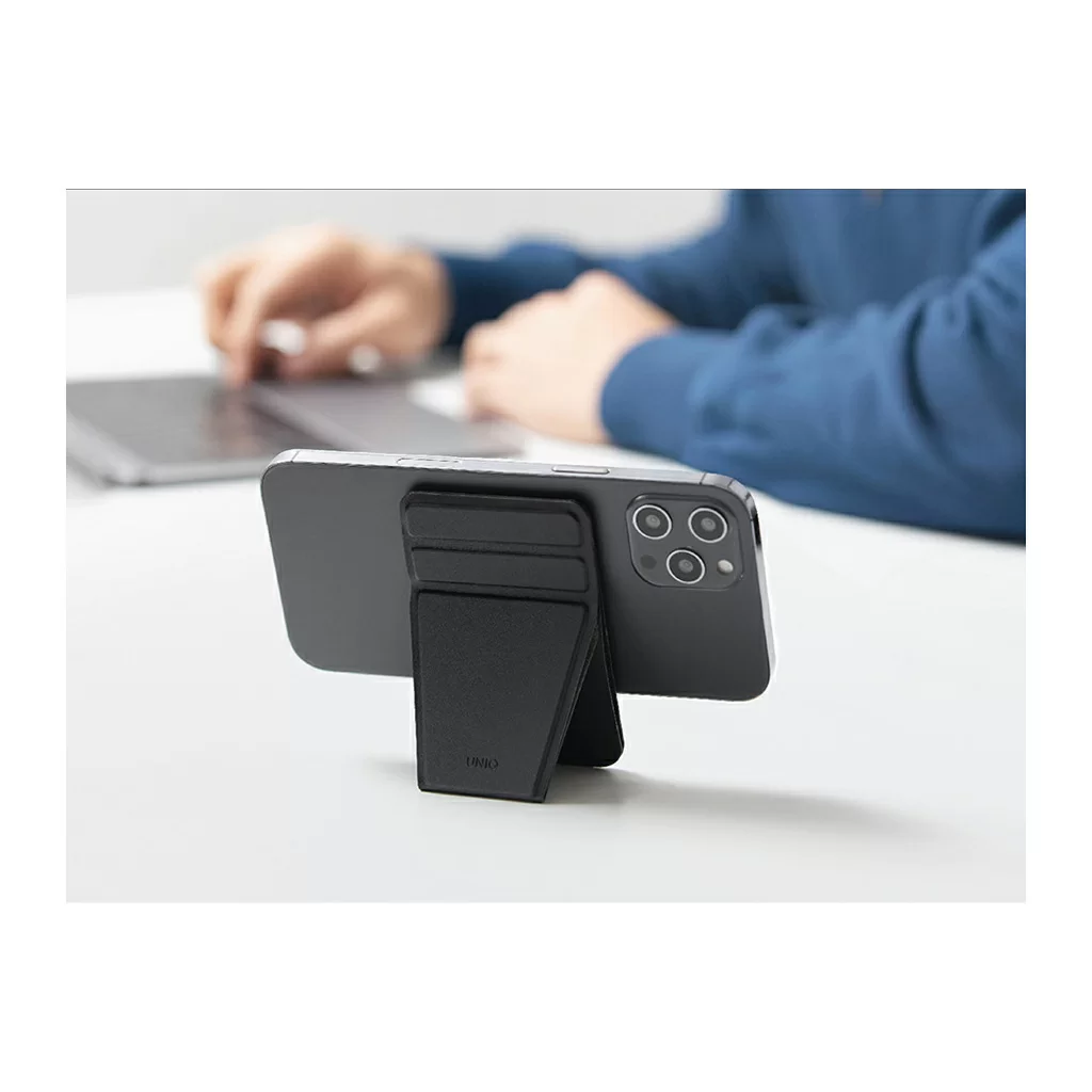 Uniq Lyft Magnetic - тонкая магнитная подставка/ручка для мобильного телефона и держатель для банковских карт. Просто установите его на MagSafe-совместимый телефон и наслаждайтесь просмотром в режиме видеозвонков или серфингом в сети Интернет. Телефон можно расположить как в портретной, так и в ландшафтной ориентации.