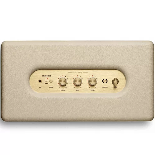 Компания Marshall взяла за основу свою фирменную рок-н-ролльную линейку домашних колонок и придала ей строгий внешний вид, громко заявляющий о себе. Ее культовый дизайн отбрасывает все другие колонки с полки. Фирменные детали, такие как шрифт Marshall и латунные ручки управления, украшают колонки, повторяя наследие рок-н-ролла. Выберите подходящую вам расцветку - оригинальный черный, винтажный кремовый или спокойный коричневый.