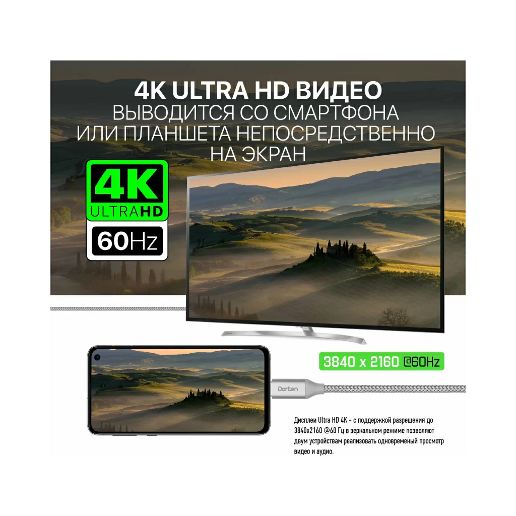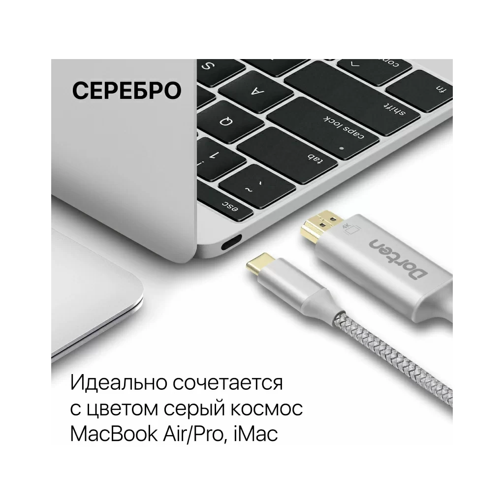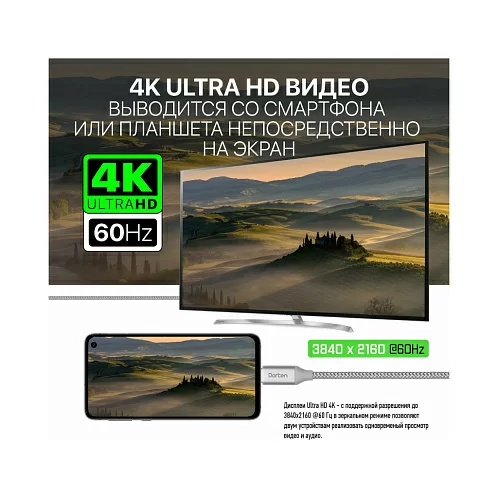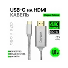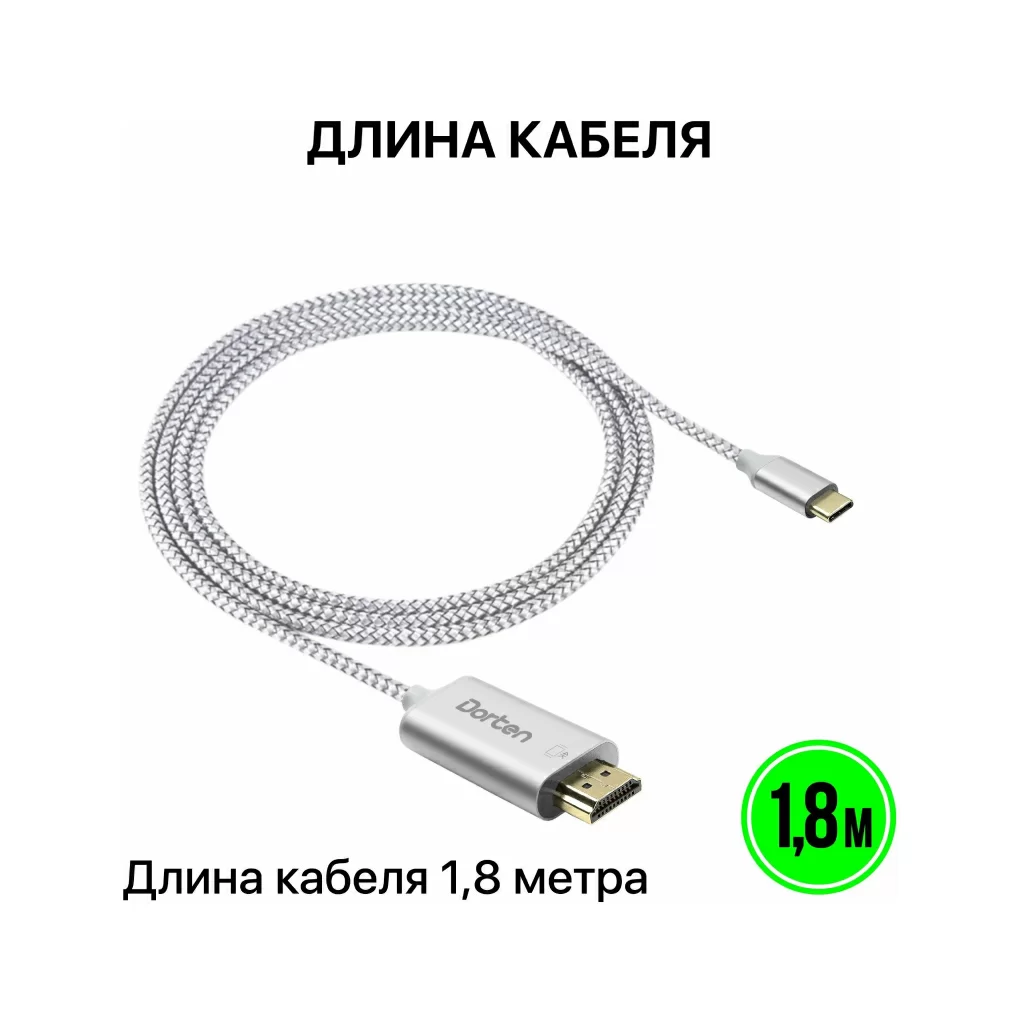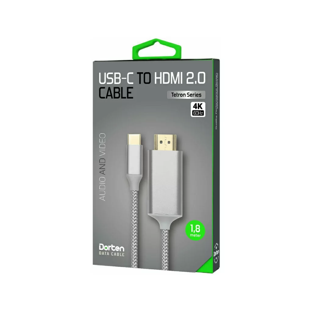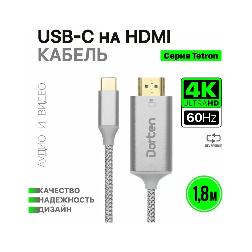 Кабель Dorten USB-C - HDMI 2.0, Tetron Series, 1.8м, темно-серый