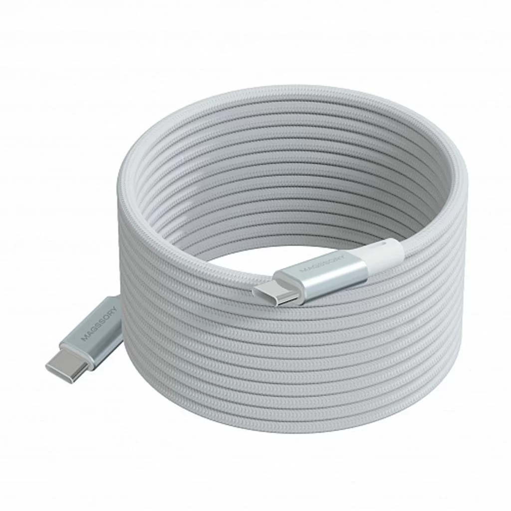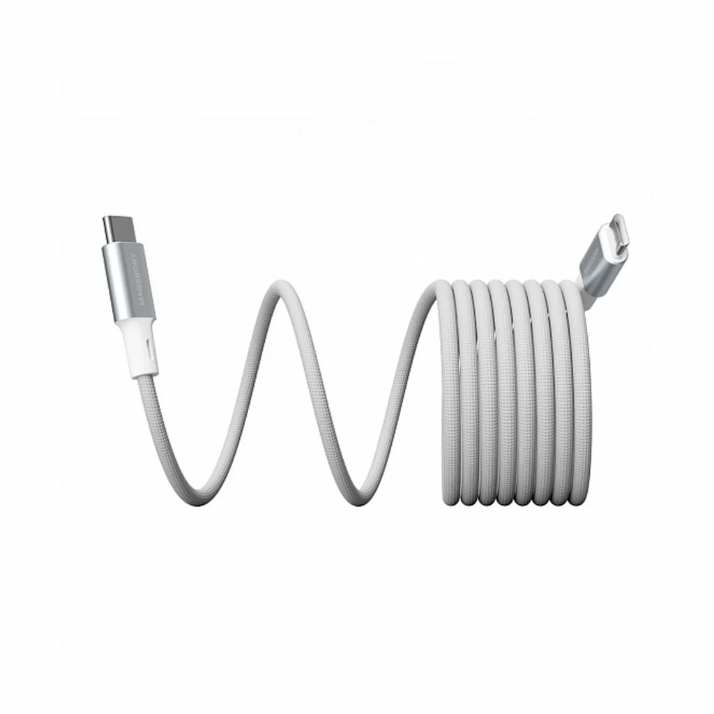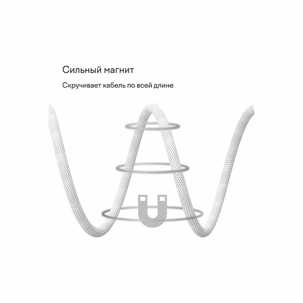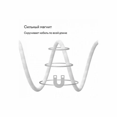 Ключевой особенностью кабеля является его магнитная конструкция, которая позволяет удобно скручивать и фиксировать кабель в компактном положении, предотвращая спутывание.