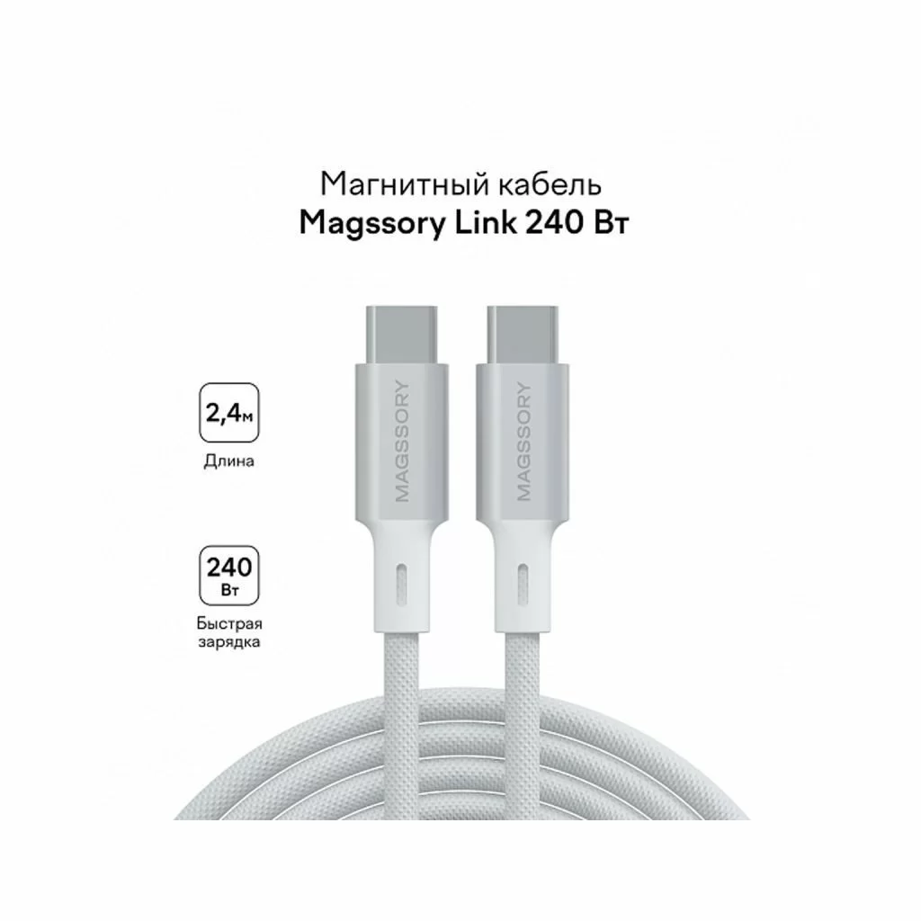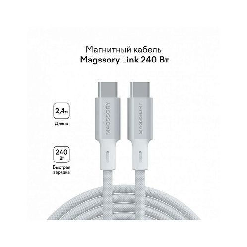 Магнитный кабель Magssory Link C 240W, USB-C, 2,4м, белый