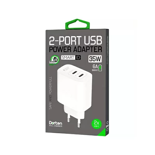 Сетевое зарядное устройство Dorten 2-Port USB Smart ID 35W, PD3.0/PPS, белый