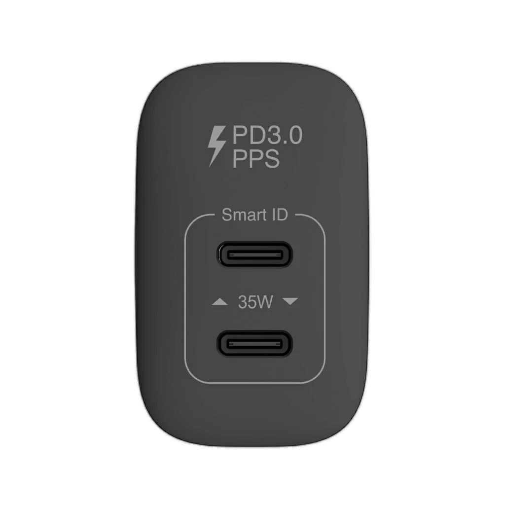 Благодаря передовой технологии GaN, зарядное устройство имеет компактный размер, а выходная мощность составляет до 35 Вт. Благодаря чипу Smart ID, зарядник автоматически определяет использование каждого порта и направляет оптимальную мощность на каждое устройство. Это позволяет заряжать требовательные устройства и все три одновременно.