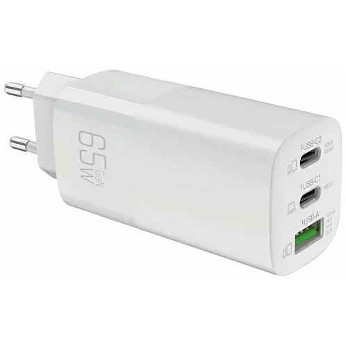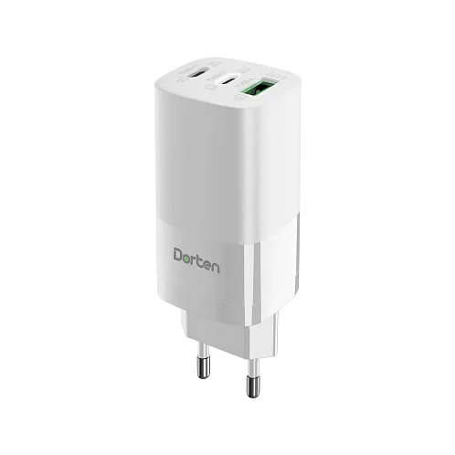 Сетевое зарядное устройство Dorten 3-Port USB Smart ID 65W GaN Power Adapter, белый