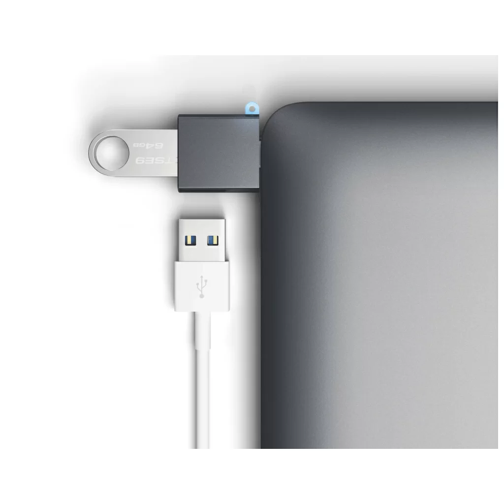 Маленький переходник очень пригодится пользователям нового MacBook, а также тем, кто использует к примеру Google Chromebook, так как эти устройства оснащены всего одним интерфейсом USB-C. Адаптер Satechi позволяет легко превратить порт Type-C на ноутбуке в стандартный порт USB 3.0, к которому можно подключать необходимые гаджеты, поддерживающие сопряжение через стандартный USB. Это могут быть флешки, цифровые камеры, смартфоны, планшеты, видеокамеры, электронные книжки и многое другое, даже компьютерная мышь или портативный вентилятор.