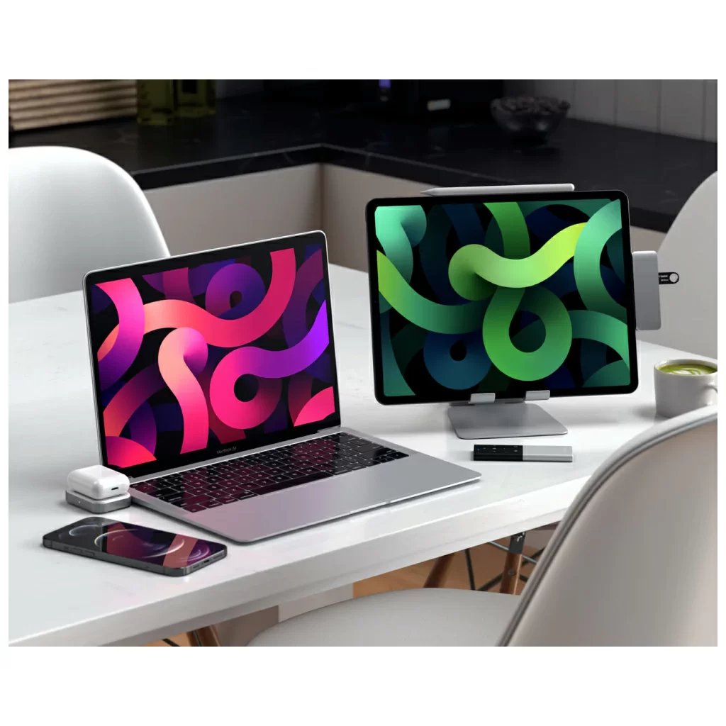 Satechi Aluminum Type-C Mobile Pro Hub, созданный специально для iPad Pro 12.9” (3-го поколения) и iPad Pro 11”, облегчает доступ к периферийным устройствам. Он преобразует единственное соединение USB-C в порты HDMI 4K 30Гц (ограничение для iPad Pro – 2K 60Гц), USB-C PD 3.0 для зарядки, USB 3.0 (до 5 Гбит/с) и аудиоразъём 3.5 мм.