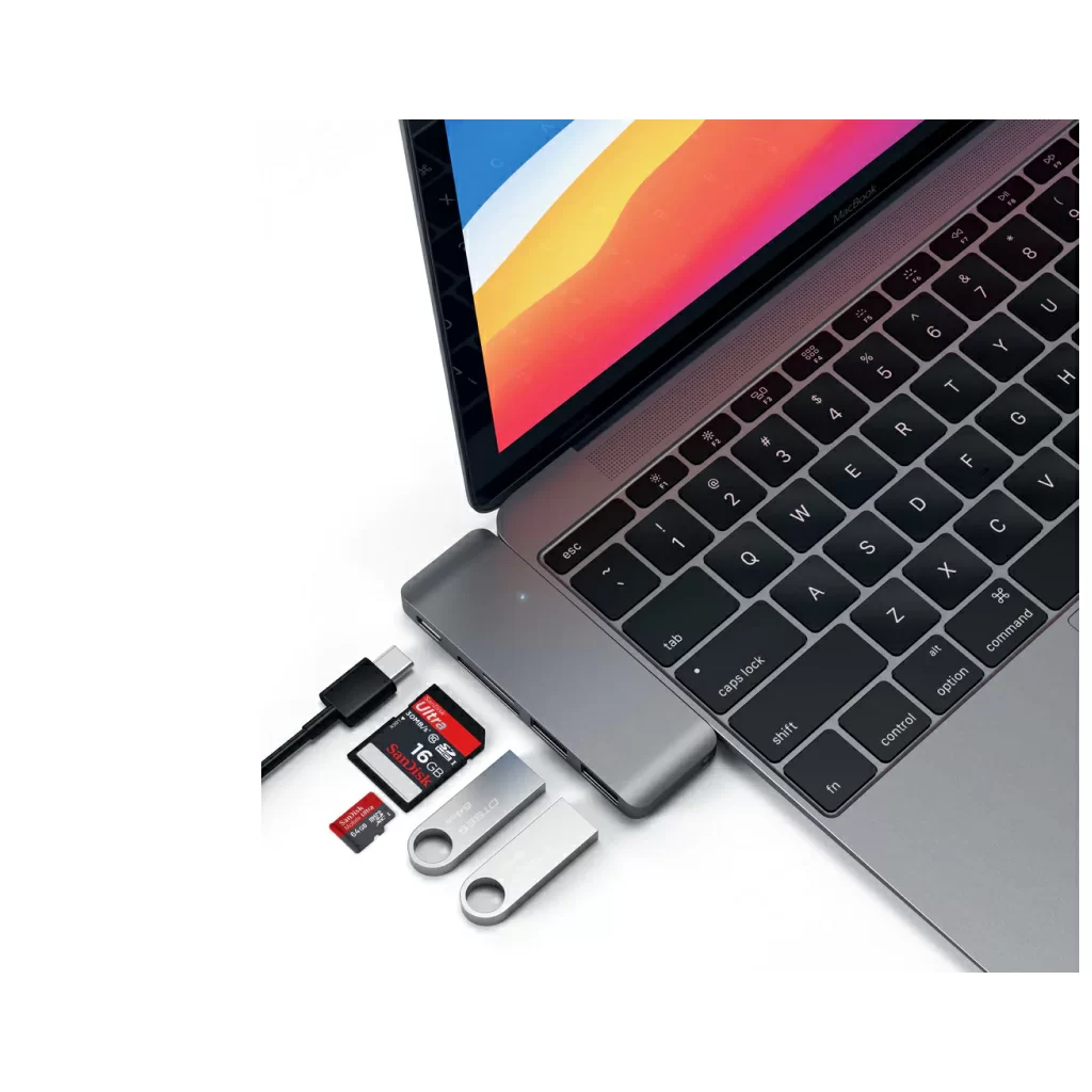 Благодаря концентратору Satechi Type-C Pass-Through USB Hub вы можете заряжать MacBook, а также легко преобразовать порт USB Type-C в два порта USB 3.0, слот для карт SD и слот для карт Micro SD. Поддерживает только MacBook 12″.