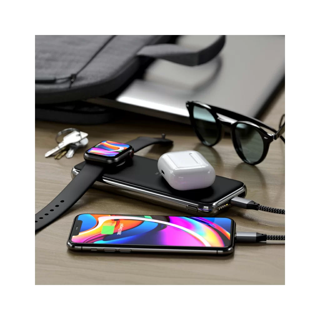 • Можно заряжать несколько устройств одновременно( iPhone, AirPods и Apple Watch)