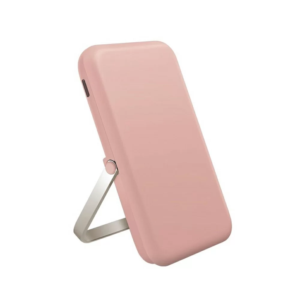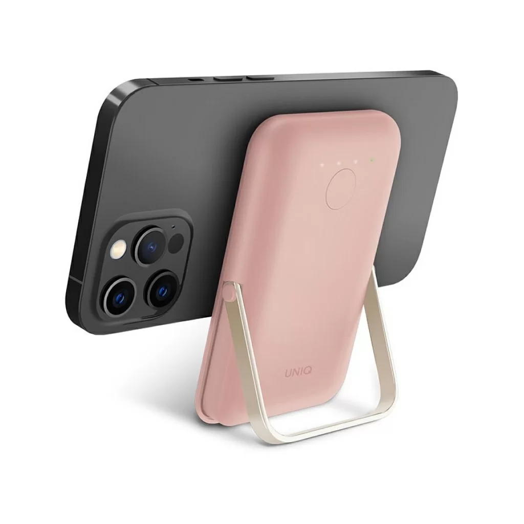 Внешний аккумулятор Uniq HOVEO 5000W, беспровод 15W, провод USB-C 20W, подставка, розовый