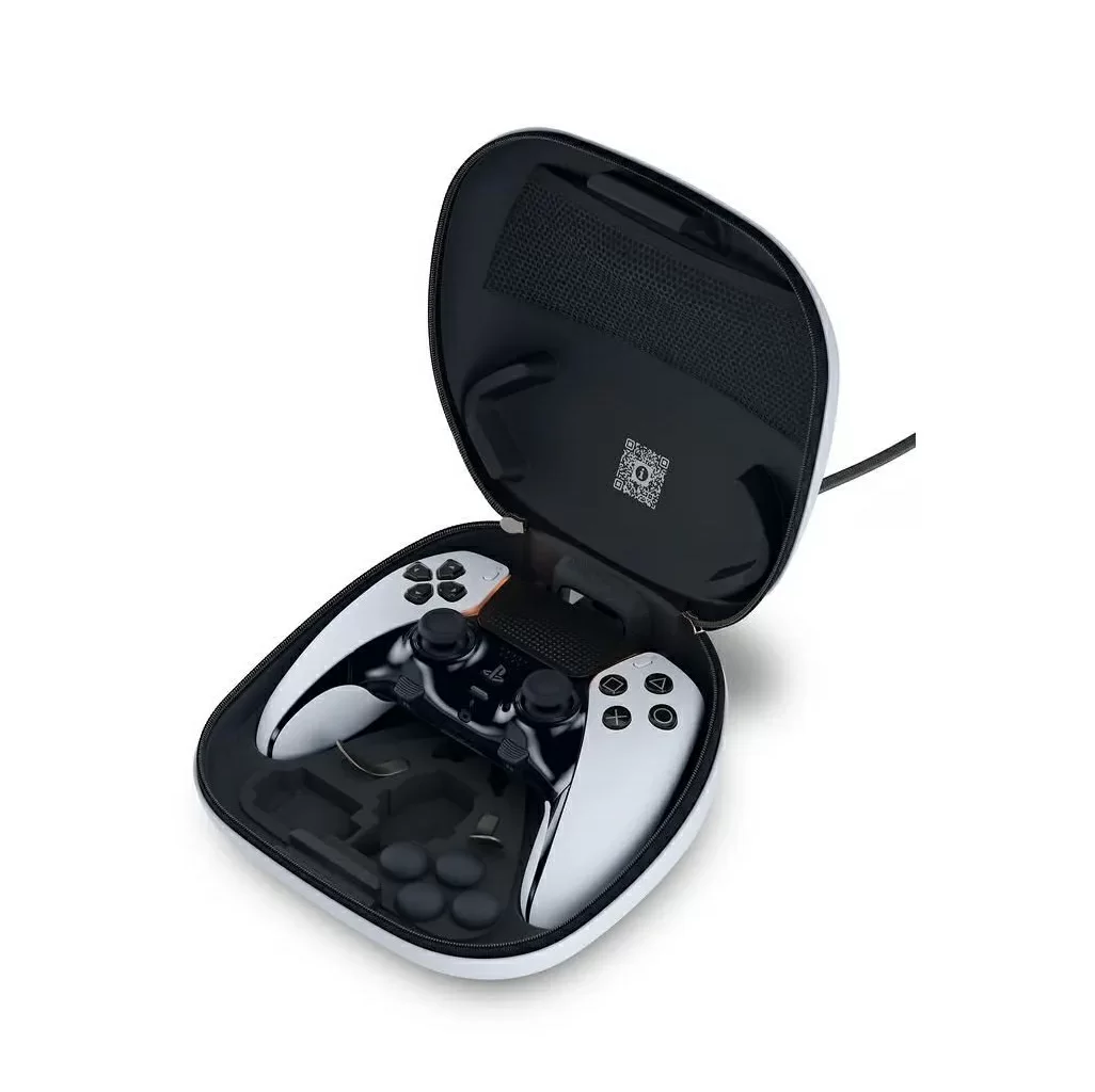 Храните контроллер в футляре для переноски: Входящий в комплект футляр для переноски позволит вам хранить беспроводной контроллер DualSense Edge и его компоненты в одном месте. Вы даже сможете заряжать контроллер через USB-соединение, пока он хранится в футляре, чтобы всегда быть готовым к следующему игровому сеансу.‎