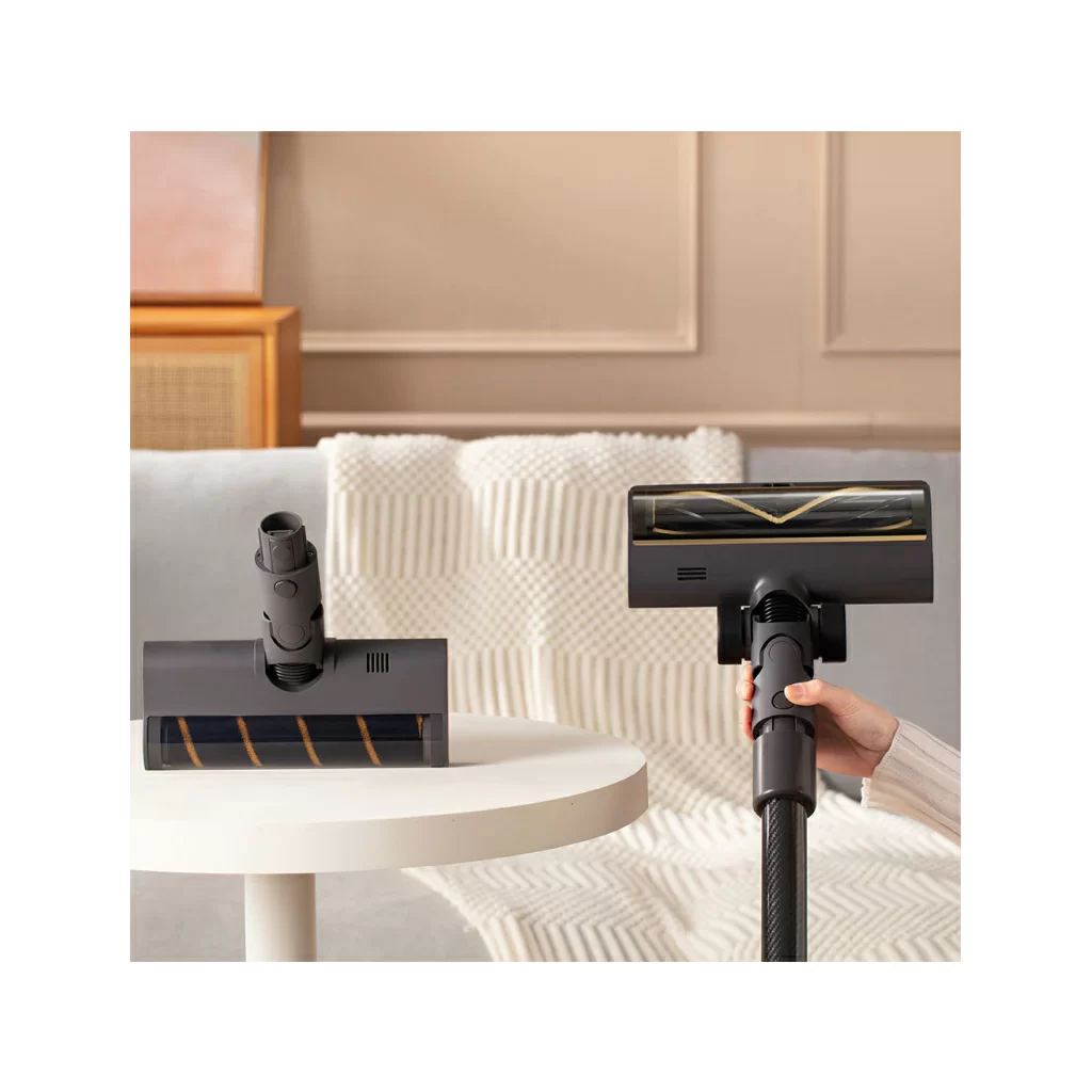 Уборка в углах и под столом теперь не требует особых усилий - Dreame R20 подлезет под мебель и в углы с помощью гибкого адаптера.