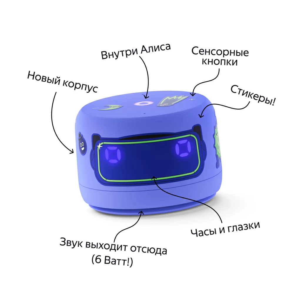 Яндекс Станция Лайт 2 — новая умная колонка для детей и тех, кто не перестаёт ими быть. Внутри живёт более эмоциональная и функциональная Алиса, с которой никогда не бывает скучно: с ней можно веселиться, делиться секретами, играть и общаться дни напролёт — она найдет ответы на миллионы вопросов, придумает идеи, предложит классные игры, включит любимую музыку. Теперь виртуальный ассистент №1 подстраивает интонацию под ваше настроение и показывает свои эмоции с помощью глазок на LED-экране Станции. В наборе — классные стикеры и маски, чтобы у ребёнка было пространство для творчества.