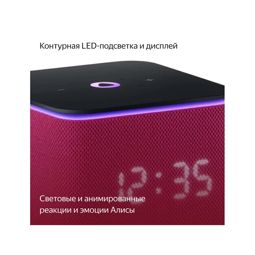 Активная контурная LED-подсветка и анимированные реакции на дисплее добавляют эмоций, когда слушаете музыку и общаетесь с Алисой. LED-дисплей показывает время и температуру