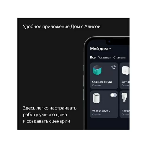 В Яндекс Станцию Миди уже встроен хаб управления Zigbee™, благодаря которому она напрямую взаимодействует с датчиками и другими устройствами умного дома, работающими по протоколу Zigbee™. Сделайте Станцию Миди центром умного дома и общайтесь с ним голосом: например, спрашивайте у Алисы, какие сейчас температура и влажность в комнате. Впервые голосовое управление для некоторых сценариев с определёнными Zigbee™-устройствами может работать даже без интернета.